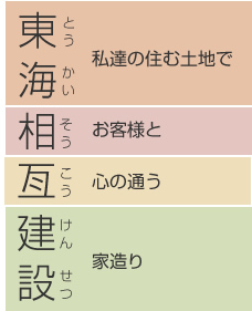 | 平成24年 | 建設業許可登録 愛知県知事許可番号(般-24)6867号 建・大・とび・土・塗・内・防 |