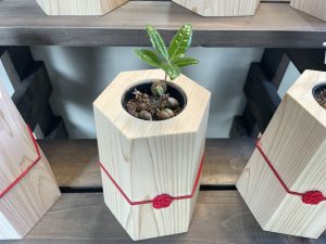ひとり一鉢、どんぐりから苗木に育てるお手伝いをします。育った苗木は2年後、森に返します。